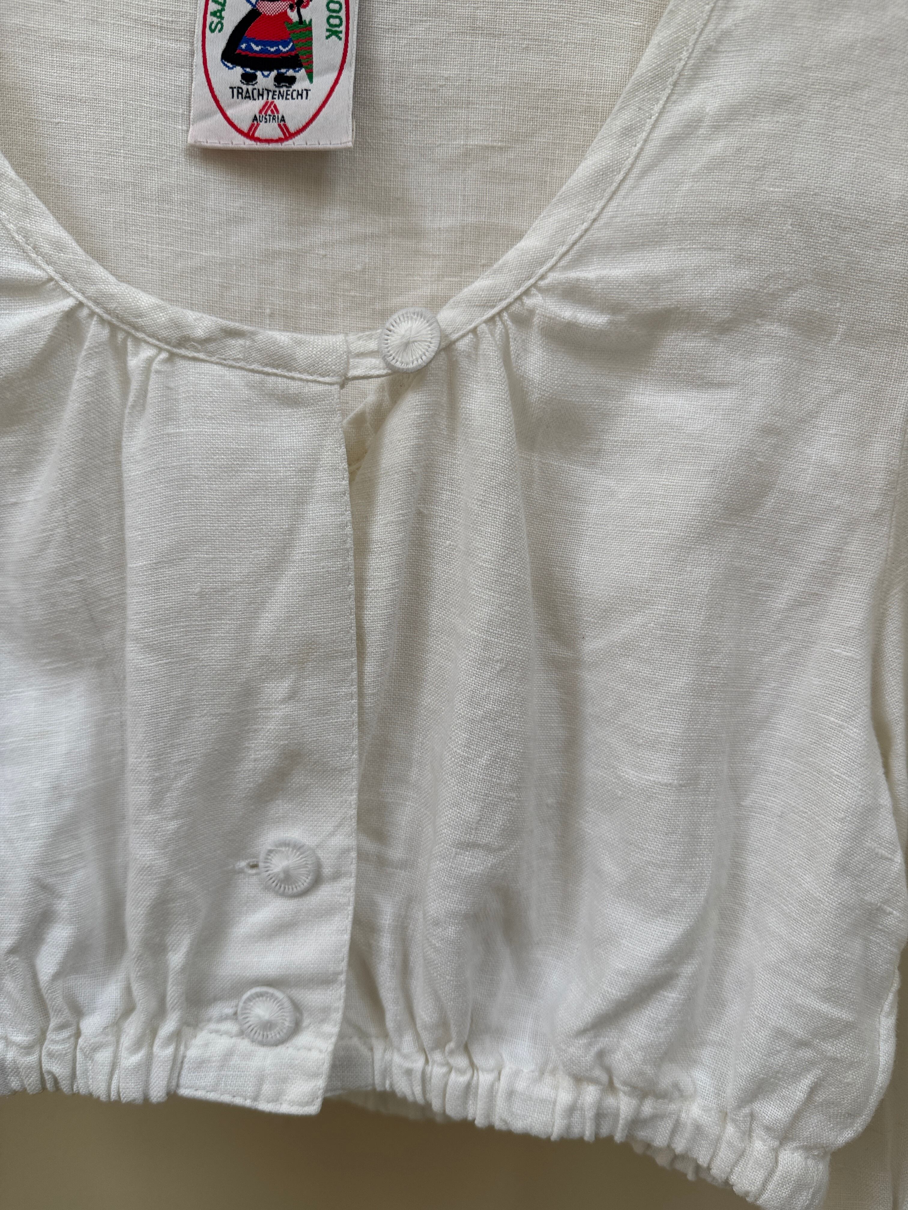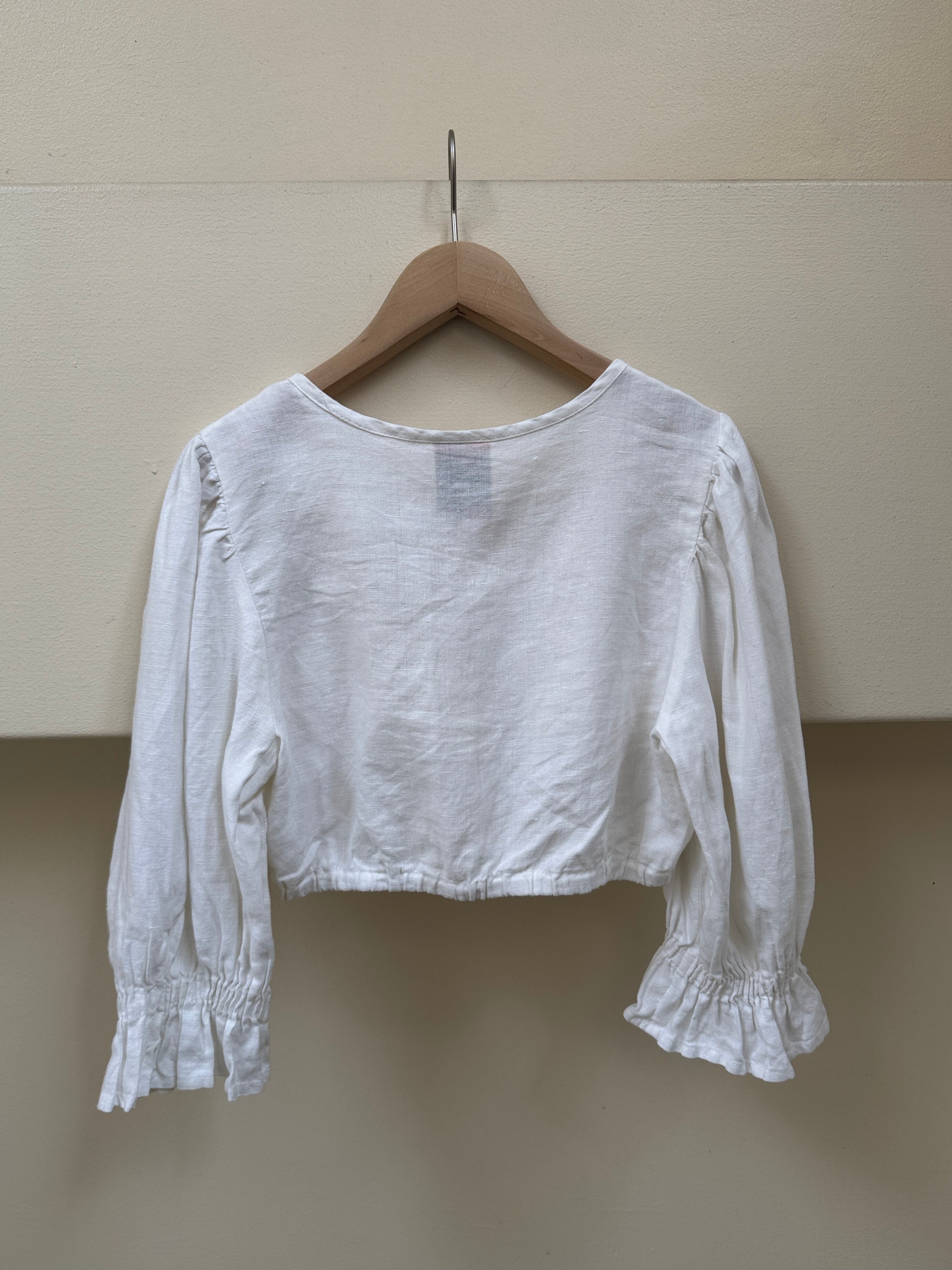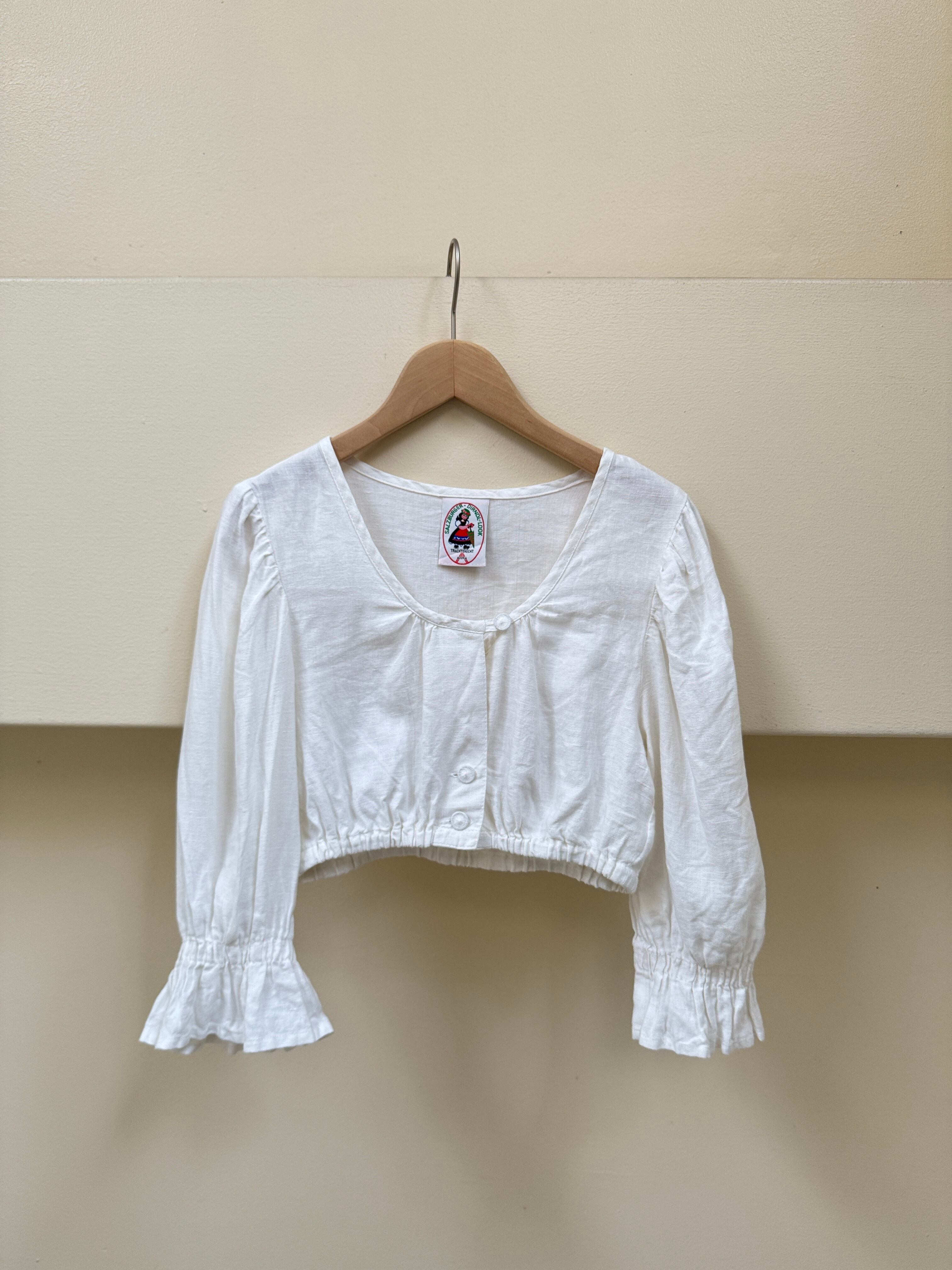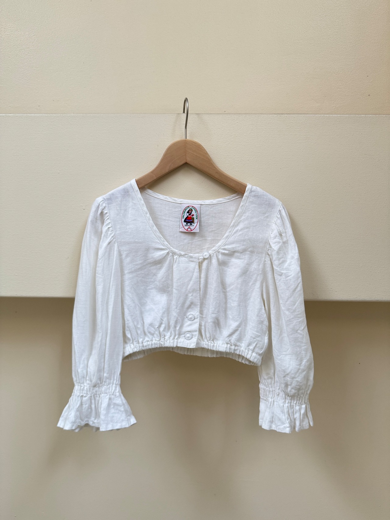 クロップドブラウス。さらりと軽やかで、肌に心地よい着心地。短めの丈感がハイウエストのボトムスと相性抜群で、すっきりコーディネート出来ます。