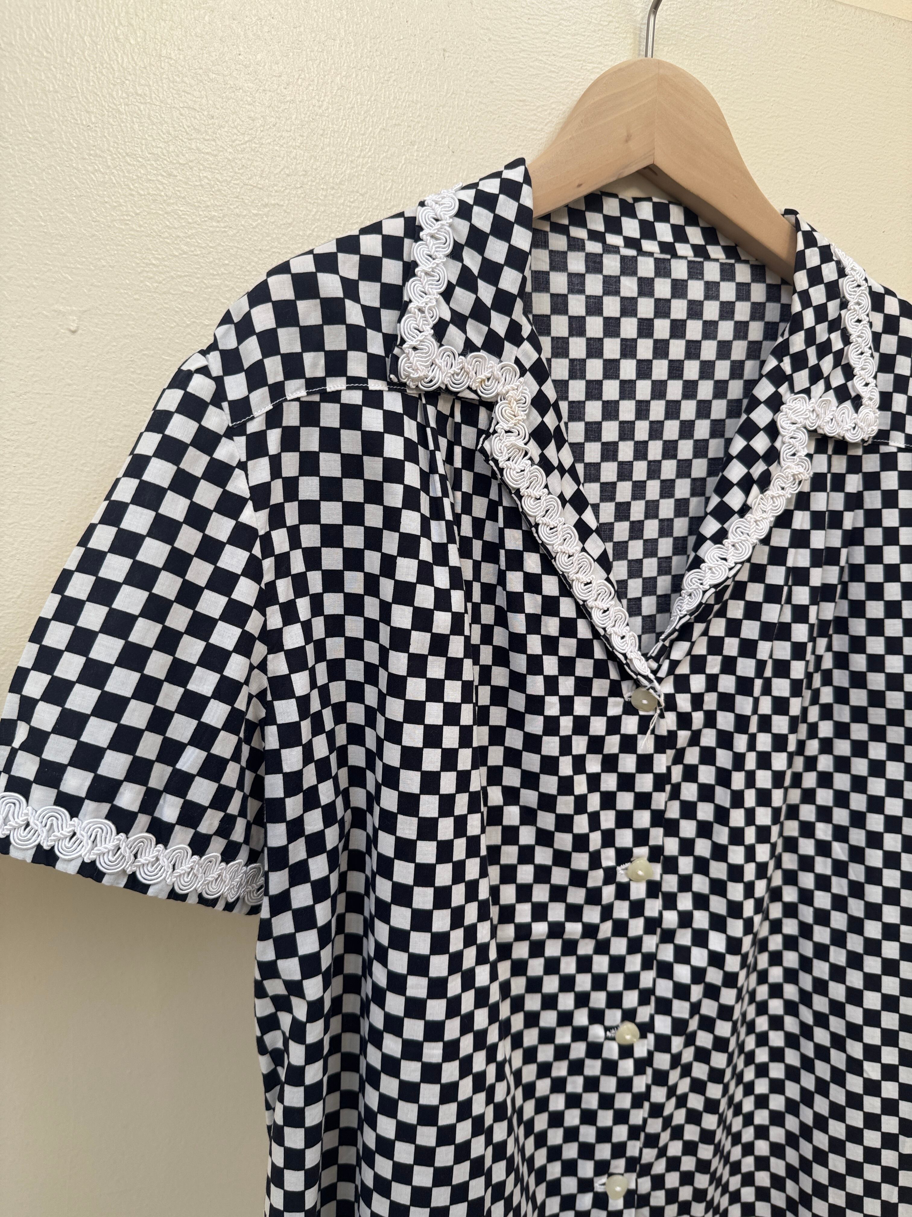 チェック柄が目を引くシャツです。一枚でも羽織りでも、ジャケットのインナーに忍ばせるとポイントにもなります。白黒のカラーでコーディネートの色合わせもしやすいシャツです。