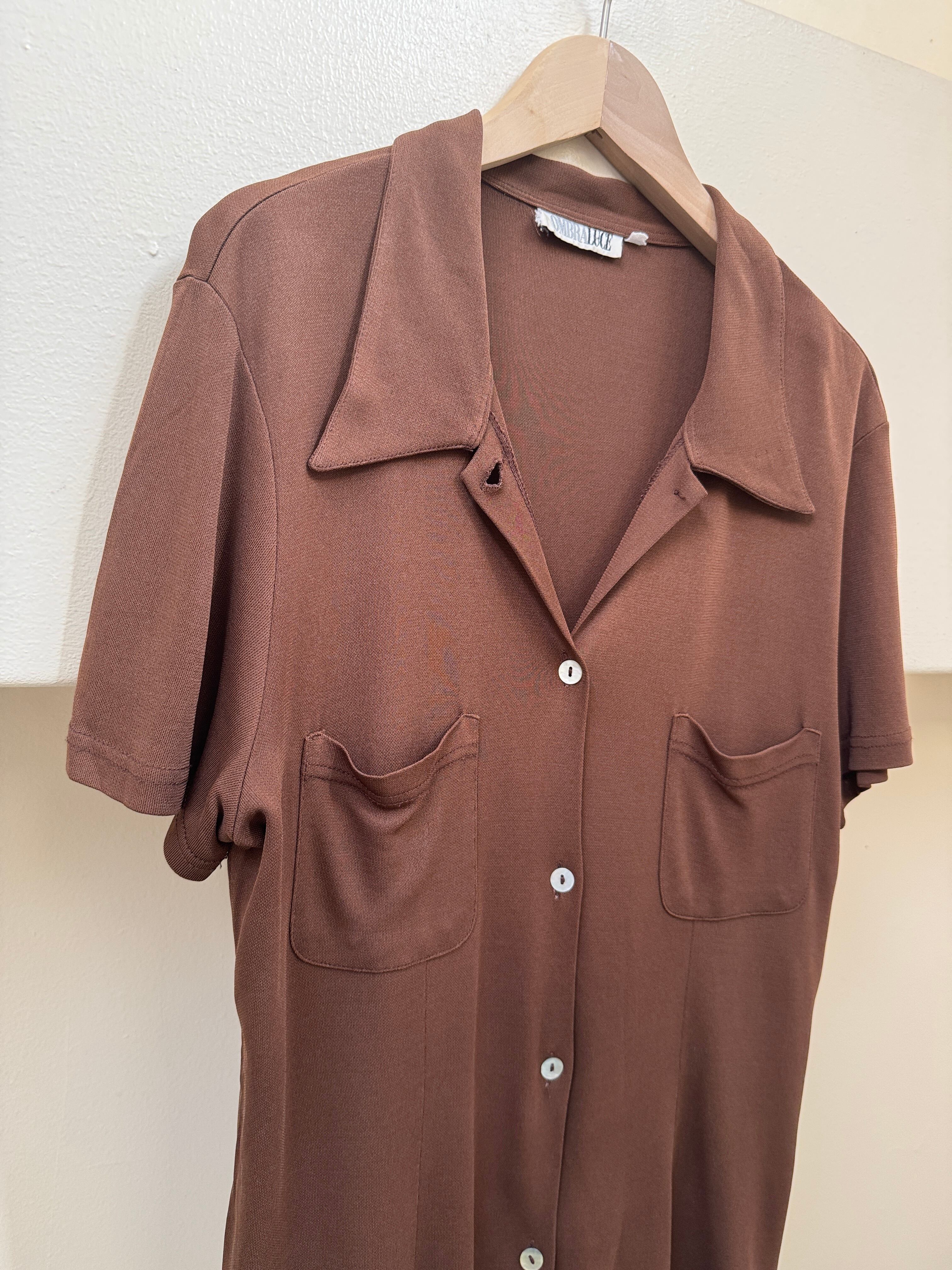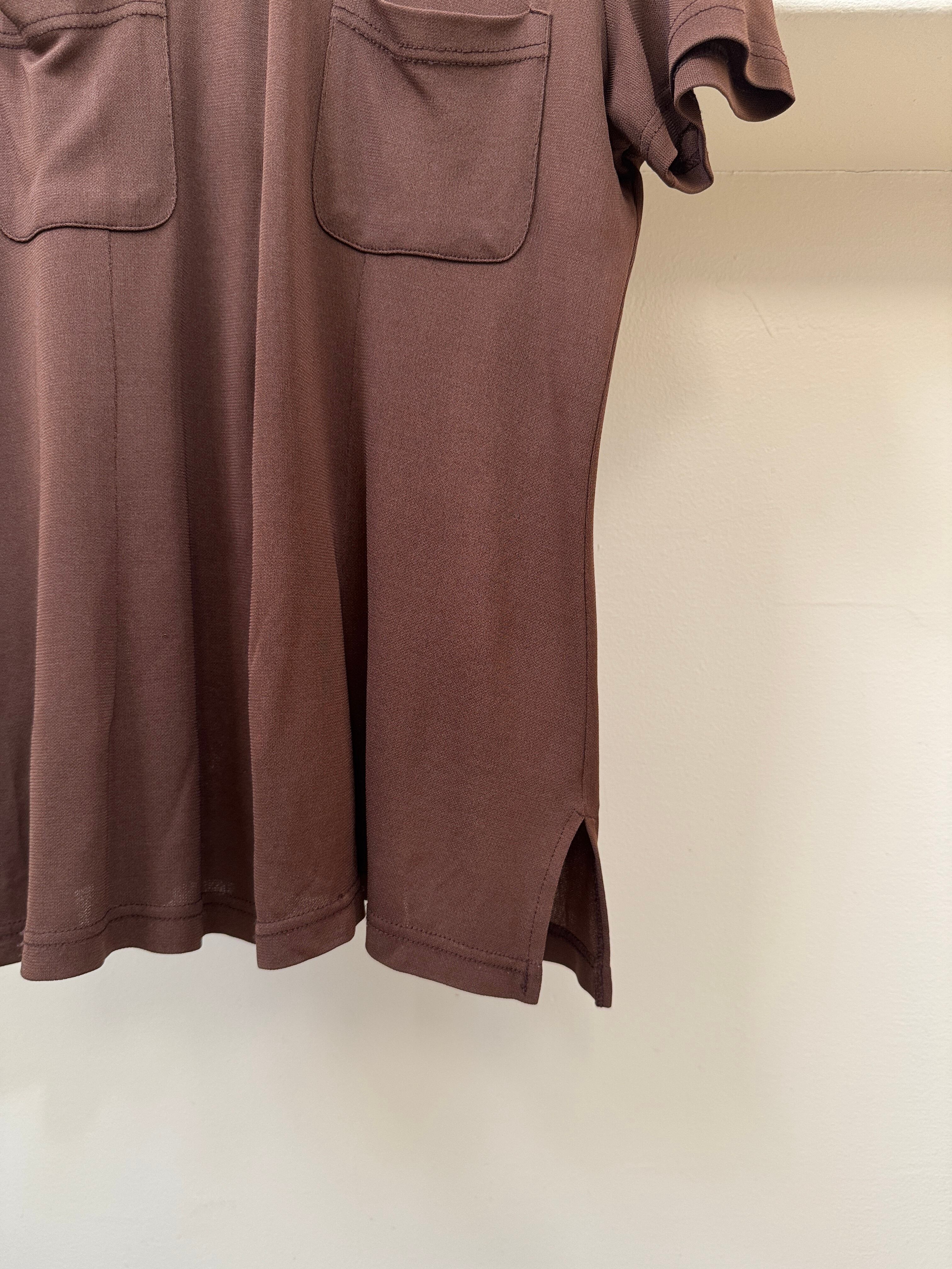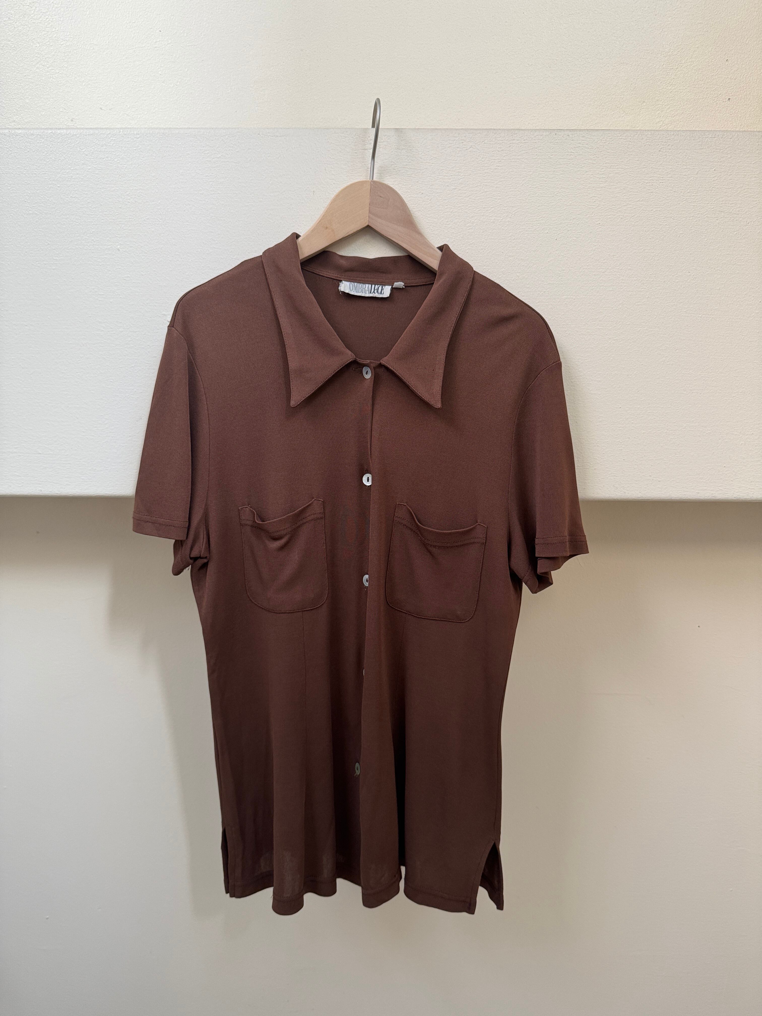 柔らかな生地感が着心地の良いブラウンのシャツです。一枚でも羽織りとしても活躍するシャツです。