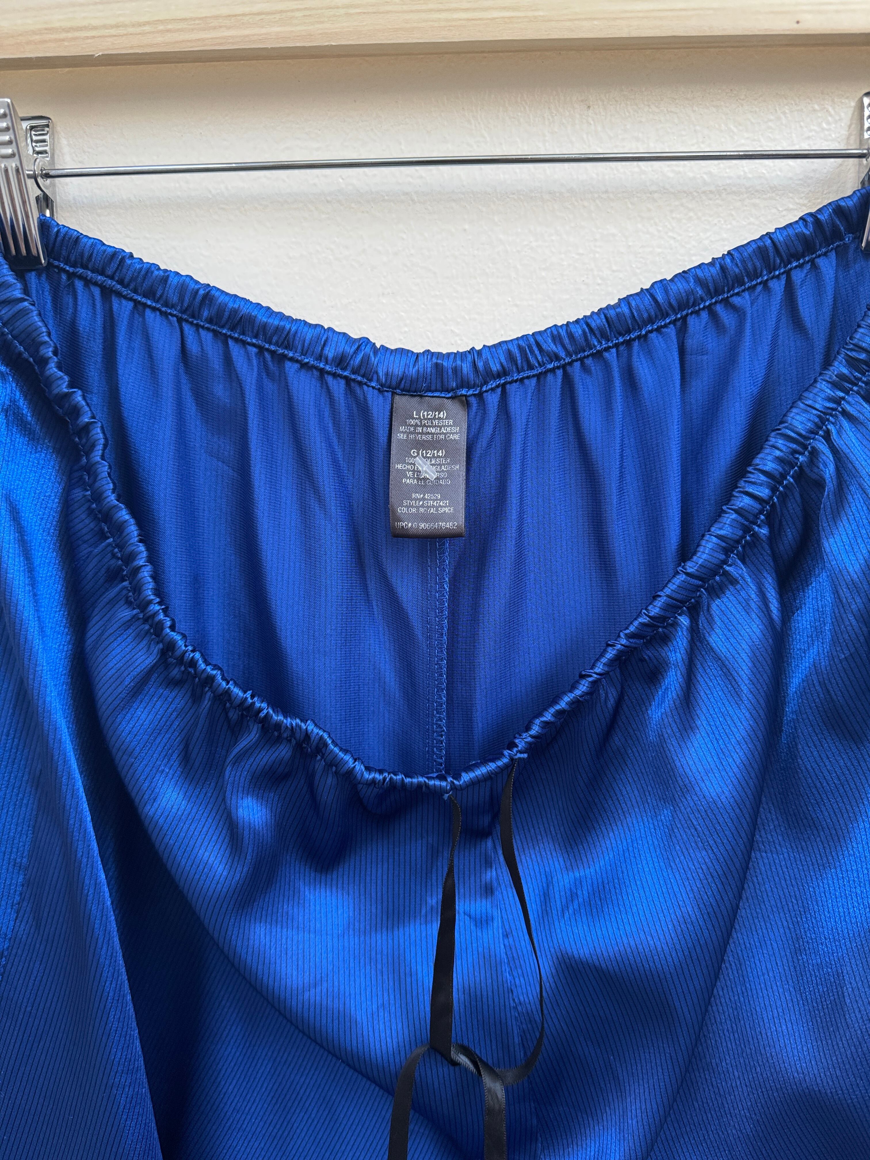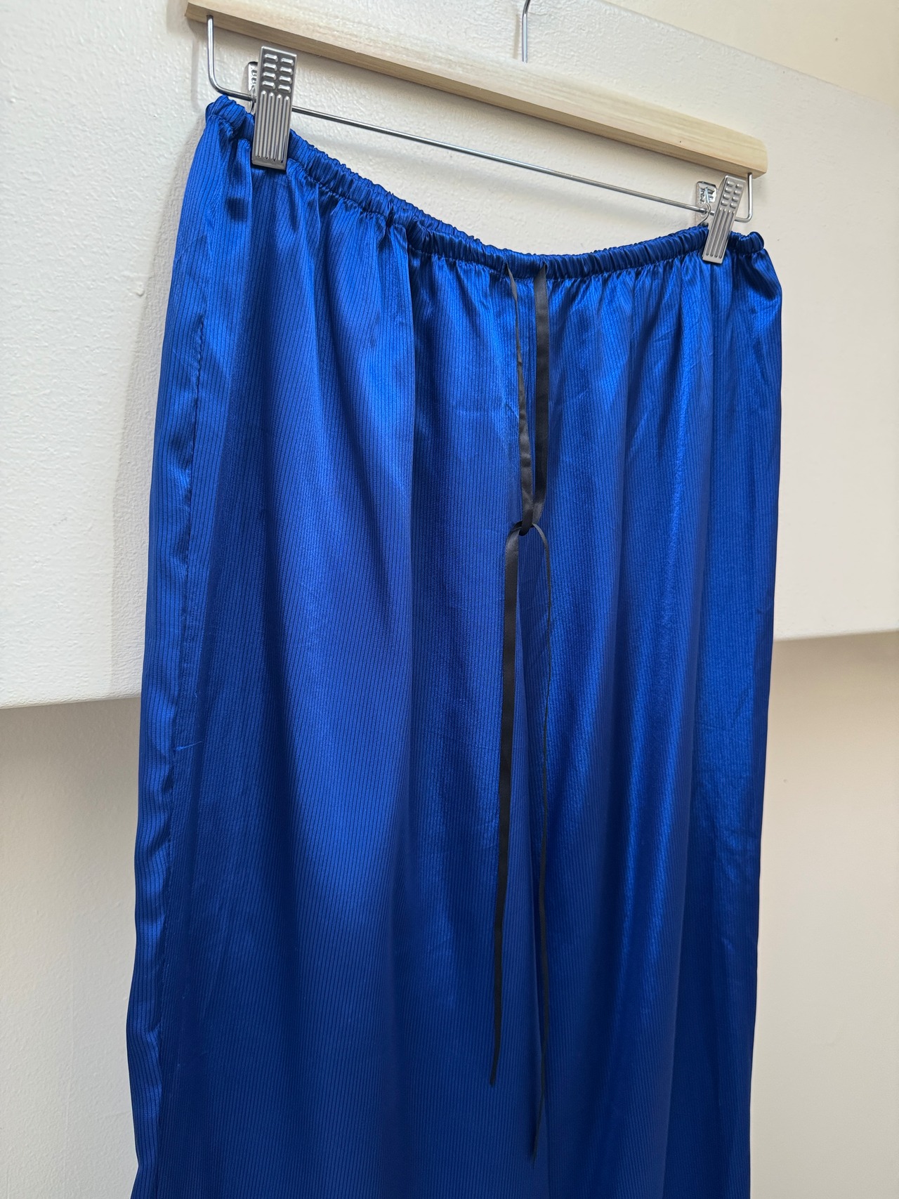 ゆったりお召しいただけるサテンパンツで着用シーズン長めで、ウエストリボンでウエスト調節可能です。