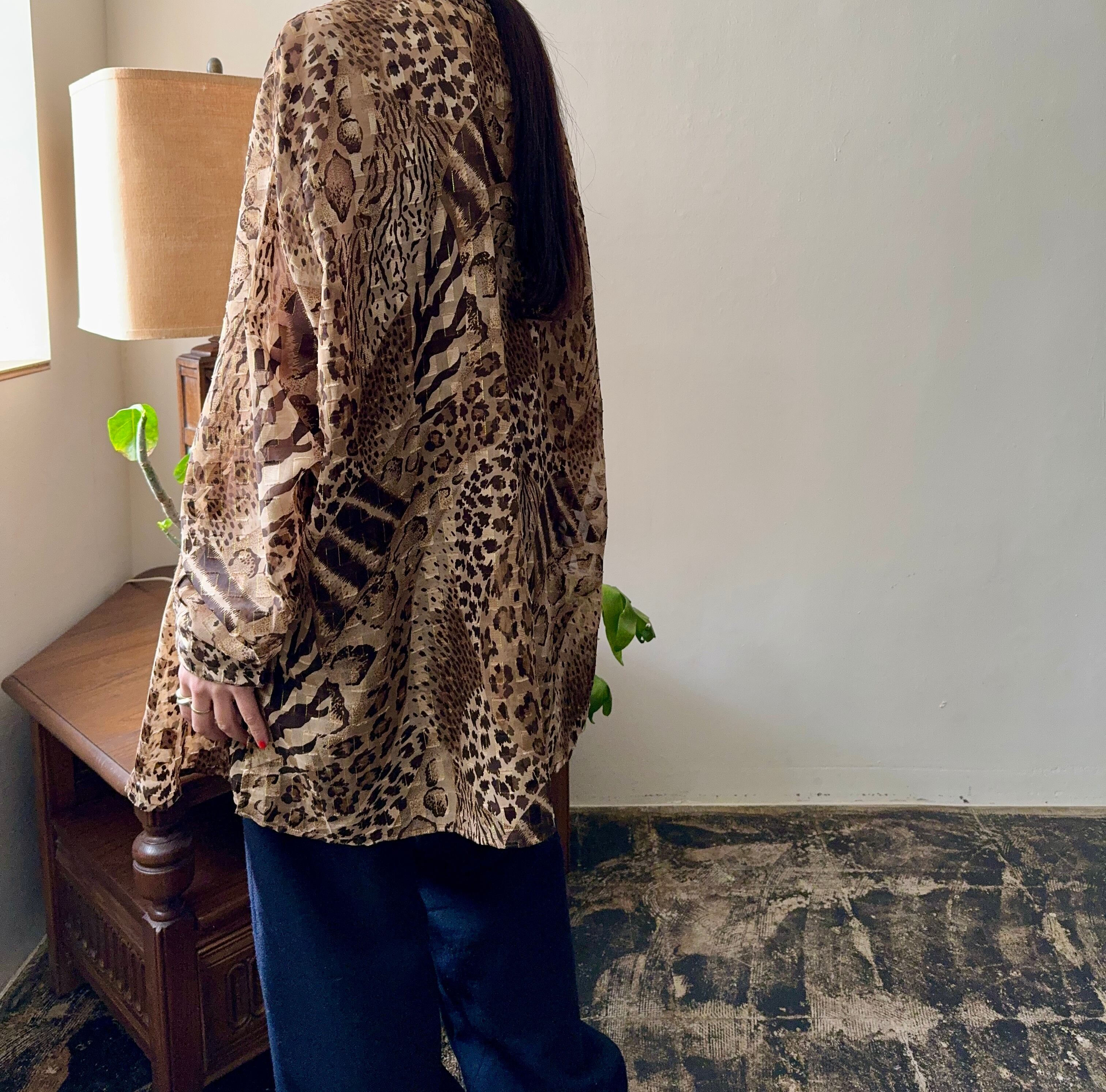 透け感のあるシフォン素材がleopard柄を和らげ、女性らしさを引き立ててくれます。
