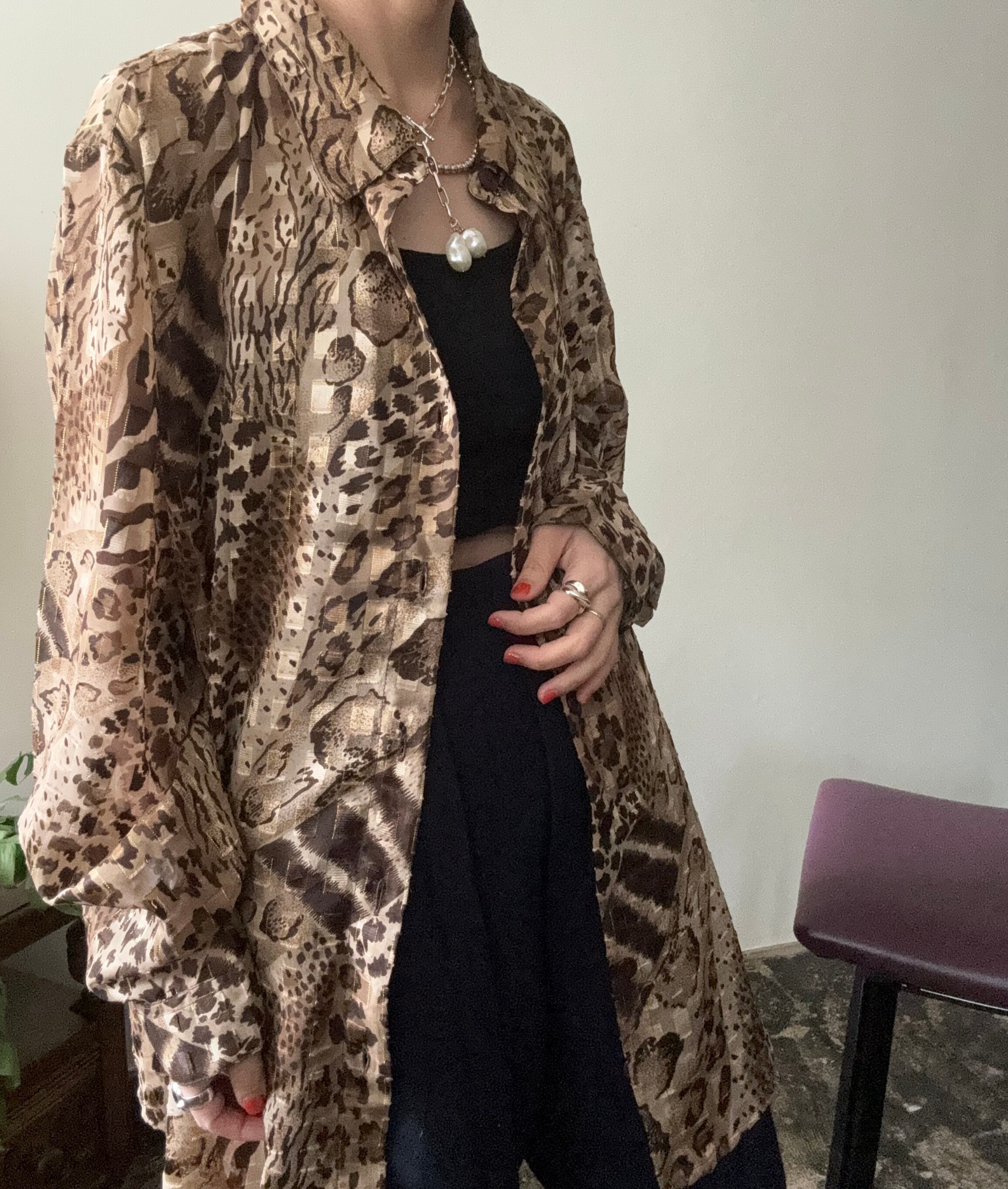 派手なヒョウ柄で洗練された印象を与えるleopard suke shirt。